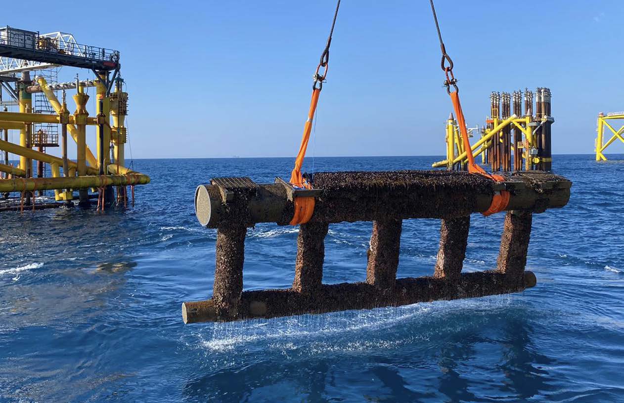 Due to sinking jacket foundation re-development of the subsea structure was required. This included the cutting and removal of out riggers and riser guard structure.